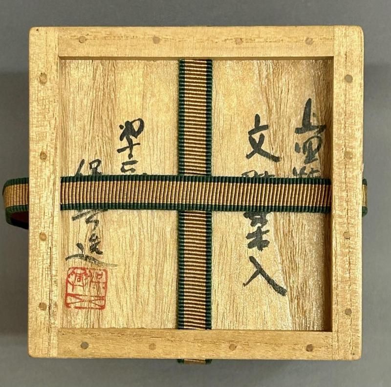 二代鈴木表朔作 唐草蒔絵 内朱茶篭 鶴鐶付 鵬雲斎宗匠書付