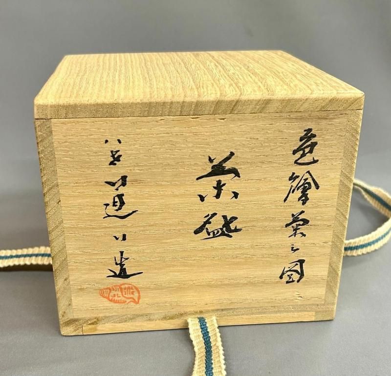 二代鈴木表朔作 唐草蒔絵 内朱茶篭 鶴鐶付 鵬雲斎宗匠書付
